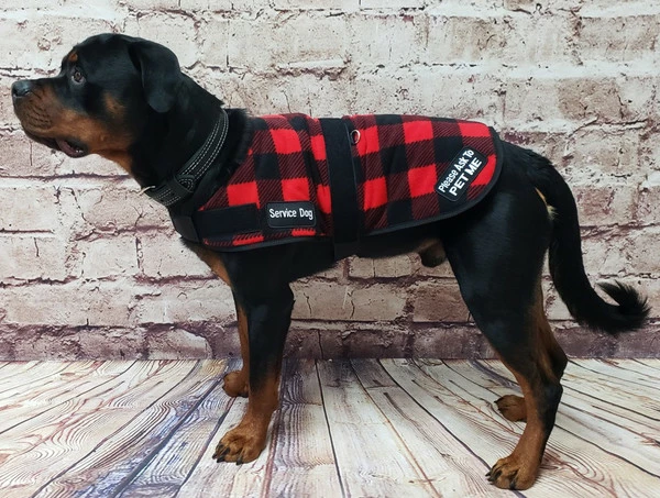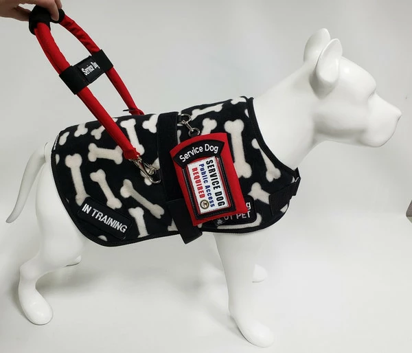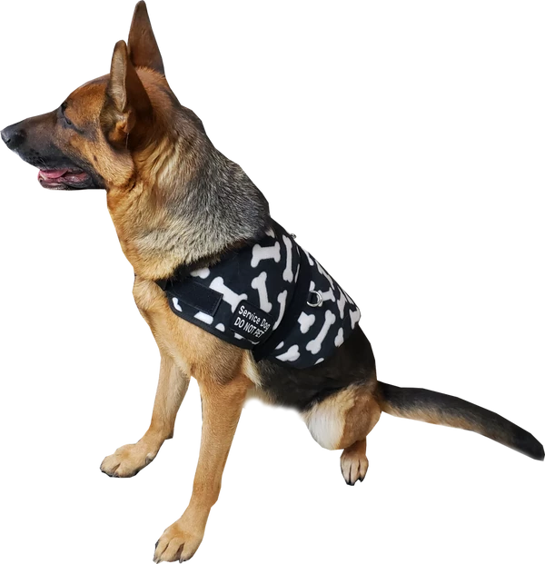 Our Service Dog Insulated Fleece Vest is great for chilly weather when your dog needs a little extra warmth but still needs to be identified as a working dog. This soft fleece vest comes in a variety of fun patterns and colors with five different sizes to choose from! This vest has a plush fleece exterior and is lined with a poly filled quilted nylon material to give your dog extra comfort and warmth. This quilted lining has a satin finish so the dog hair does not easily stick to it.