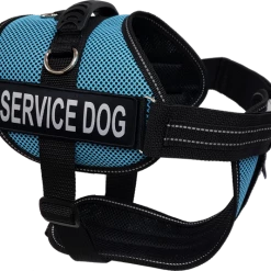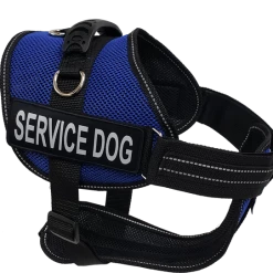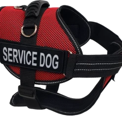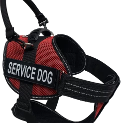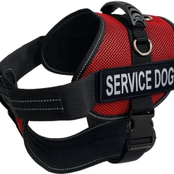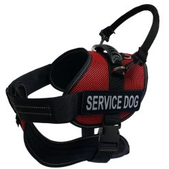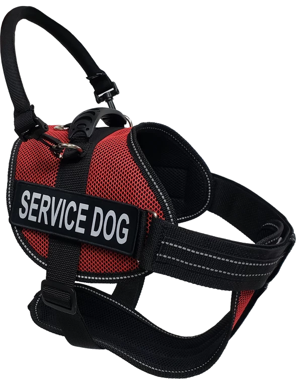 The harness-style mesh vest comes with a contoured chest connecting pad that uses the same breathable backing as the vest. The adjustable chest and girth straps of this service dog vest connect together with the chest pad so the vest stays in place while your dog is working. The vest can be put on easily using the nylon side-release buckle, and there are no floppy strap tails since the strap ends are built into the dog vest. The vest and chest protector are both trimmed in a reflective webbing for optimal safety. A molded handle on the back of the dog harness keeps your dog close so that you have control in any situation. The vest’s D-rings make attaching a leash and bridge handle easy. Service dog kit is available in other sizes and colors, and is made in the USA.