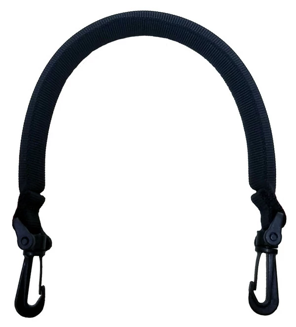 The Nylon Clip-on Bridge Handle w/Identification Band is a light weight bridge handle. It comes with a removable identification band. This bridge handle is 12″ tall. Bridge handles are the taller handles that are used on and attached to the service dog vest to extend the reach of a handle for the handlers comfort and control. The bridge handles are a great addition to any service dog vest as they help the handler to stand without bending over the dog. The Nylon Clip-on Bridge handle w/Identification Band will work with any of our vests that have D-rings for handles. This bridge handle is black with black nylon snaps and the ID band is a black band that has stand out white embroidery letters that state, “Service Dog”.