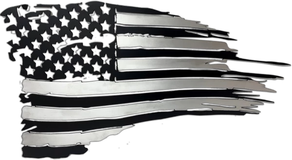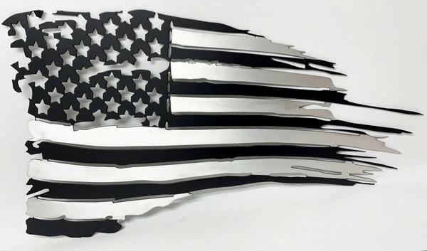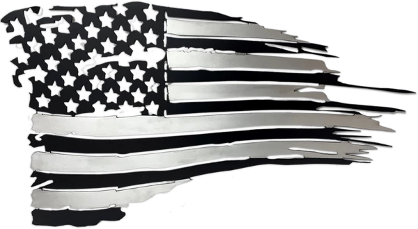 Our Tattered American Flag makes a great decoration for either the wall, exterior, garage or any room you want to proudly display the flag. CNC cut from a solid piece of .100 inch smooth aluminum and then painted flat black & clear coated. These signs are made to last in both indoor and outdoor conditions. There is 3 sizes to choose from! Made by Activedogs.com a USA company.