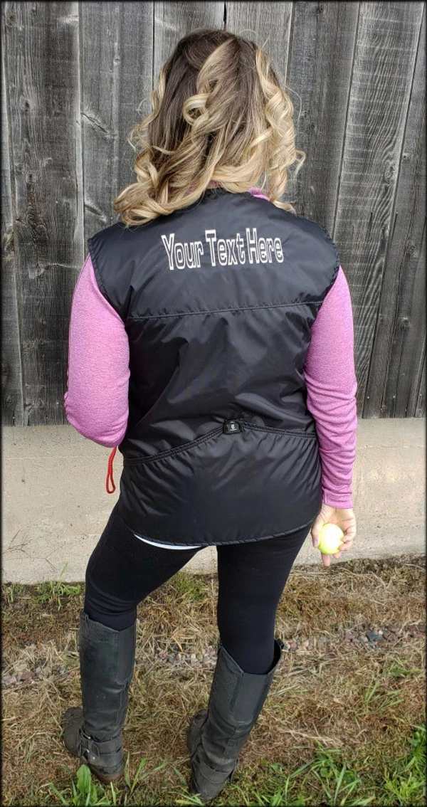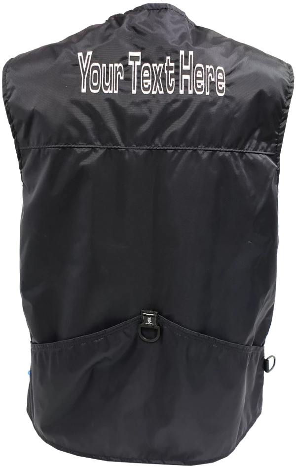 You can choose to have text or a logo embroidered on the either the left or right side of the front of the vest. A custom logo will also require a digitizing fee.