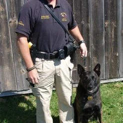 The Wheelchair Pulling Dog Leash w/Handle works like the Wheelchair Pulling Lead with a couple of added features. I developed this leash while working with one of the foundations disabled veterans who uses a wheelchair. The added features of the Wheelchair Pulling Dog Leash w/Handle are a rubber molded handle, double bolt snaps, and floating O-ring. It also comes in two lengths, 24” or 36”. The reason for the handle was because it gives the dogs handler quicker access to the dog leash when going through doorways and narrow spaces. This leash has a bolt snap on both ends. The one end has a floating O-ring so the leash can be quickly wrapped around and attached to a wheelchair arm or posts of different sizes. The other leash bolt snap attaches to the dog. This is very convenient as there are so many applications where the dog leash could be attached. And the bolt snap makes it much faster if you need to detach the leash from the wheelchair.