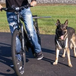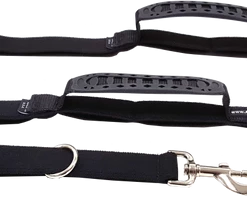 The Wheelchair Pulling Dog Leash color is black; it has two chrome bolt snaps. The overall length from snap end to snap end is either 24” or 36”. See product #707586 for the Pulling & Balance Harness that works with this leash.