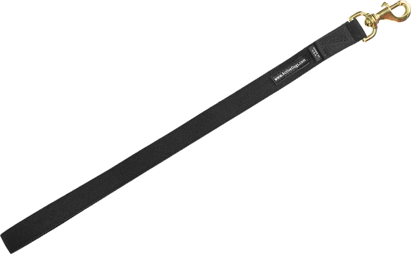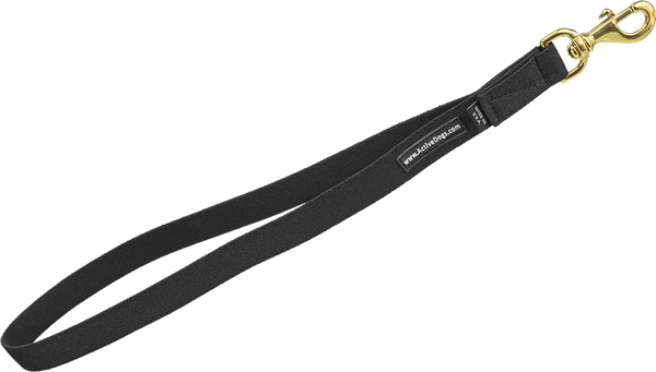 We recommend attaching this lead to the wheelchair and having a different lead attached to the dog. The Wheelchair Pulling Leash color is black; it has a solid brass bolt snap on one end. The overall length from snap end to folded end is 24”. See product #707586 for the Pulling & Balance Harness that works with this leash.
