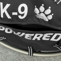 Choose from 3 decorative styles: K9 Powered with paw print, flag with your custom text or a simple, blank bag. Custom text designs can have up to 10 characters on the first line and up to 5 characters on the second line.